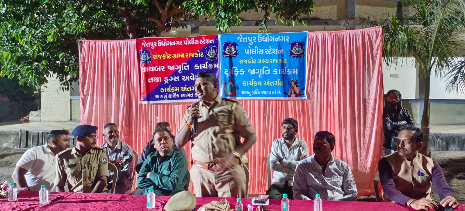 નવાગઢ ઉદ્યોગનગર પોલીસ અને અપ્પુ ગ્રુપની સહયોગી કામગીરીના ભાગરૂપે આજે સાયબર ફ્રોડ, ટ્રાફિક સલામતી અને ડ્રગ્સ નિવારણ અંગે મોટું જાગૃતિ કાર્યક્રમ યોજાયું. કાર્યક્રમમાં ચંદુભાઈ ભોપા, DR.P.I. મયંકસિંહ ઠાકોર અને વકીલ જીતેન્દ્ર પારધી સહિત નિષ્ણાતોએ લોકો માટે મહત્વપૂર્ણ માર્ગદર્શન આપ્યું.