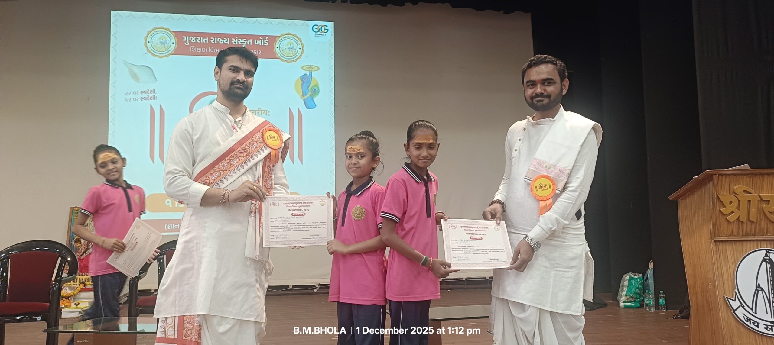 આંકોલવાડી કન્યાશાળા: ગીતાંશ કંઠપાઠમાં બાલિકાઓ અને શિક્ષકની જીલ્લાકક્ષાએ પસંદગી, સન્માનિત