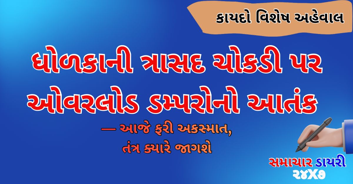 ધોળકાની ત્રાસદ ચોકડી પર ‘‘માતેલ સાંઢ’’ જેમ દોડતા ઓવરલોડ ડમ્પરો — આજે ફરી અકસ્માત, તંત્ર હજુ સુતેલું! November 16, 2025 No Comments