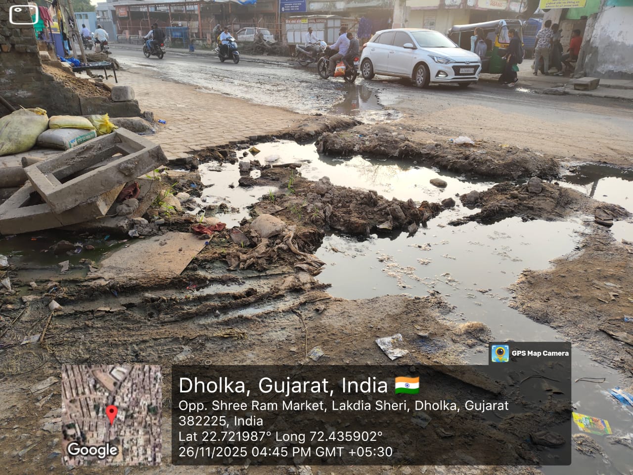 ધોળકામાં ગટર કાંડ! શ્રીરામ માર્કેટ–નારાયણ રેસિડન્સી રોડ પર ગંદા પાણીનો કાળો કેર — તંત્ર બેદરકાર, રહિશો ત્રાહિમામ! November 28, 2025 No Comments